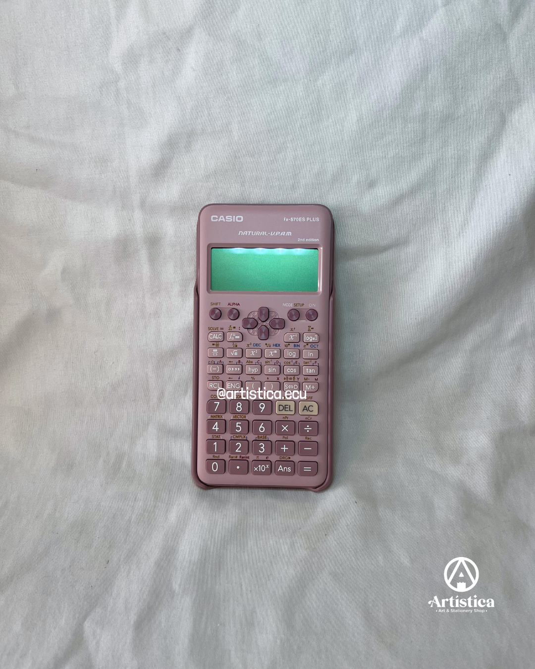 Calculadora científica fx-570ES PLUS tono pastel rosa, cuenta con 417 funciones