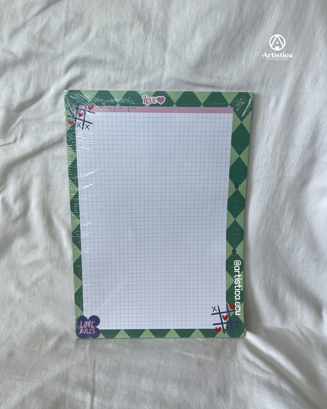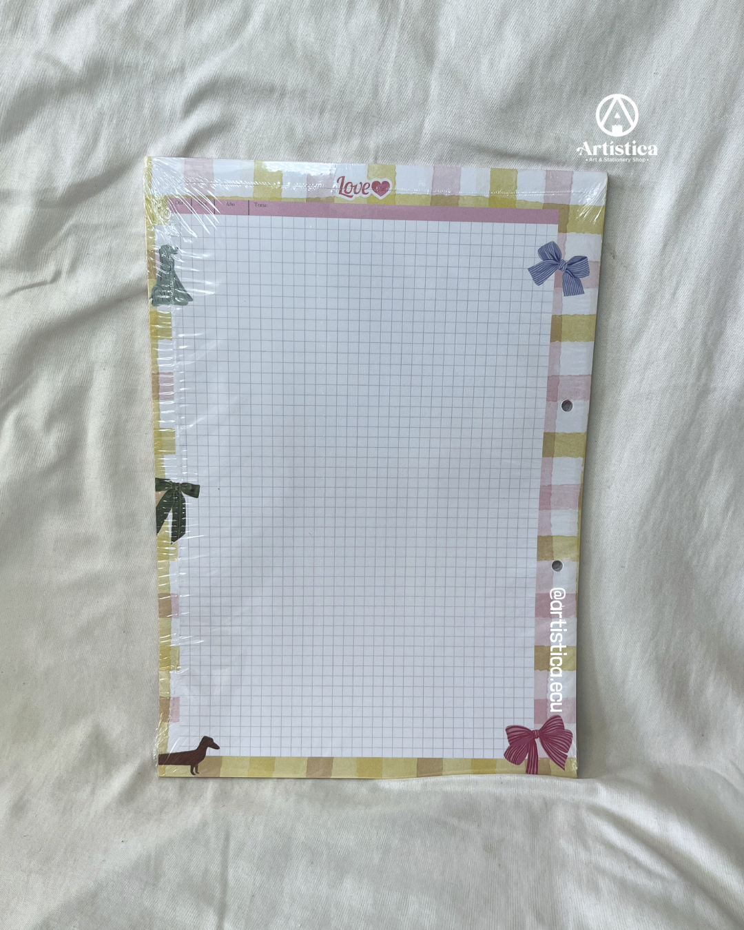 Hojas x50 a cuadros con bordes decorados Love